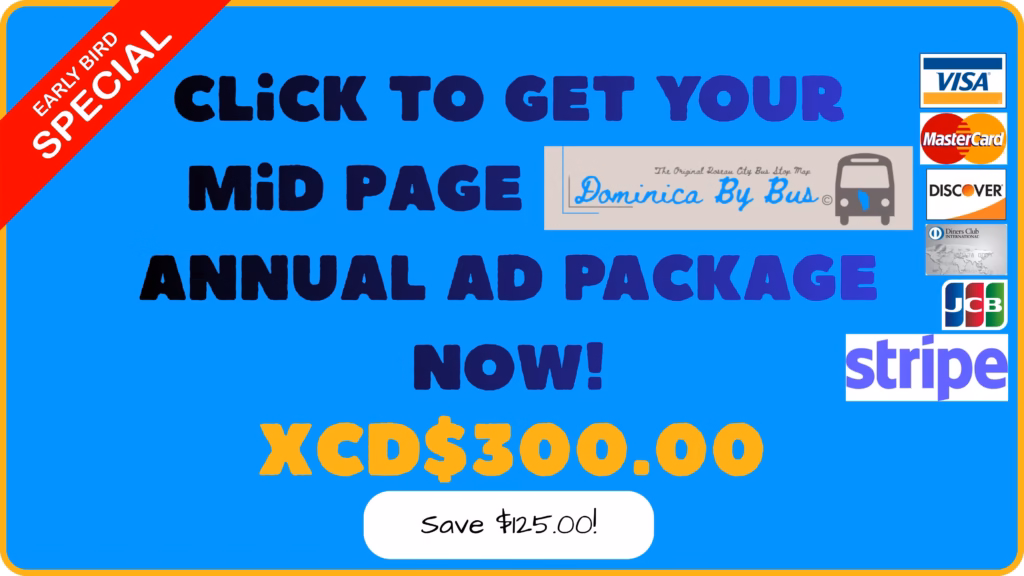 Payment Methods accepted – Cash in XCD or USD equivalent at 2.70, cheque drawn on an inland bank, NCCU CU Online transfer, kind (negotiable), credit or debit card via Stripe. A fee of $100.00 will be charged on returned cheques. Monthly subscription payable only by credit or debit card via Stripe. Payment is due prior to June 30, 2026, unless otherwise agreed. Ads will not be published until full payment is received. Branded merchandise included in packages is not customizable. Branded merchandise inclusions available after 6th monthly payment for monthly subscribers. Advertising period is from September 1, 2026 through August 31, 2027. Renewal of advertising space is subject to availability and must be confirmed by June 30th in the current term. Advertisers must submit ad materials in the required format and specifications by June 30, 2026. Failure to provide materials on time may result in delays or forfeiture of the ad placement for that period with a 50% refund on a full annual payment, or termination of monthly payments with no refund. All advertising content is subject to review and approval by the website owner. Ads that are deemed inappropriate, offensive, misleading, or illegal will be rejected or removed without prior notice. Advertisers agree to indemnify and hold harmless the website owner from any claims, damages, or legal actions arising from their advertisements. The website owner is not responsible for any losses or damages arising from the use of the advertising space or the content of the advertisements. Advertisers are solely responsible for all claims related to their ads. The website owner does not guarantee specific results, exposure, or click-through rates for advertisements. The website owner reserves the right to modify these terms and conditions at any time. Advertisers will be notified of any changes before renewal. These terms shall be governed by and construed in accordance with the laws of The Commonwealth of Dominica.